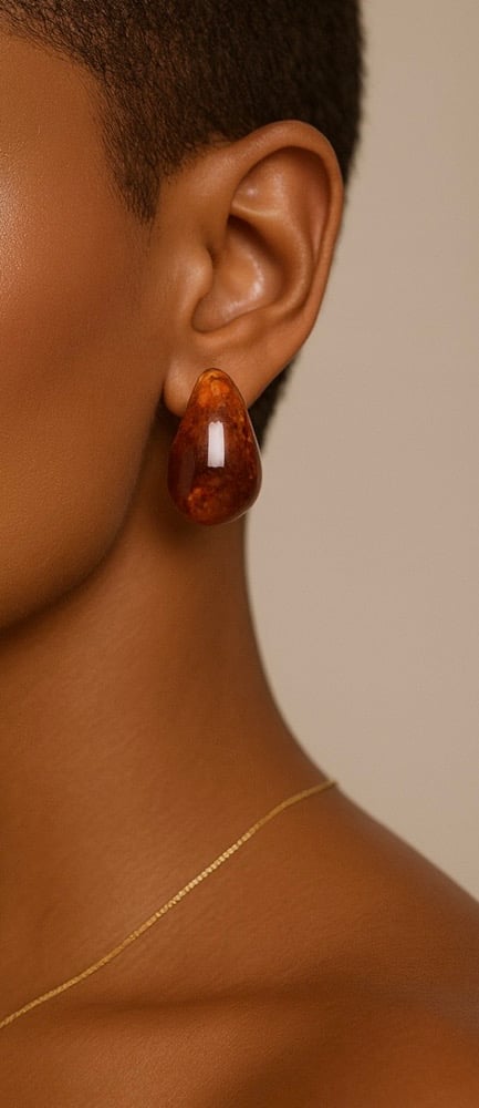 Add a warm, elegant touch to your look with our Amber Teardrop Stud Earrings.Designed with a glossy, marbled finish, these earrings bring a natural glow and timeless sophistication.Lightweight, comfortable, and perfect for both daily wear and special occasions.