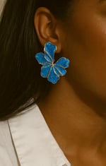 These blue flower stud earrings feature a bold floral design with soft petal shapes and a glossy finish. Lightweight and eye-catching, they add a pop of color to any outfit. Perfect for everyday wear or special occasions.